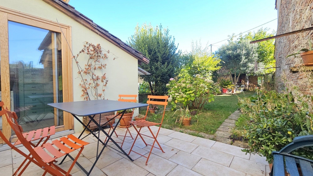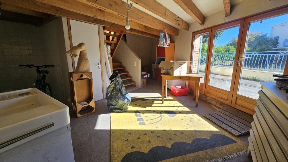 The annex, which is bright and has independent access from a rear street, is equipped with a wood stove, double glazing, a sink with toilet, an electric water heater, a separate electrical panel, and a sewage system. This space offers many possibilities: workshop, office, independent accommodation, or professional project.
