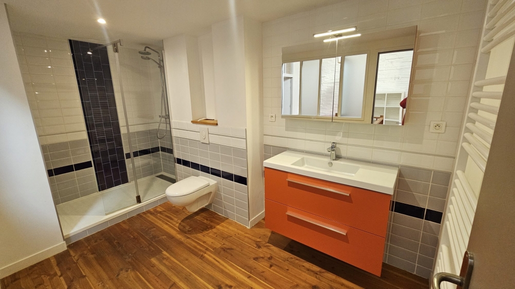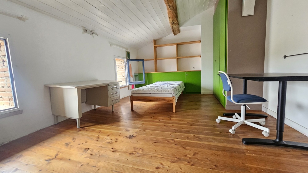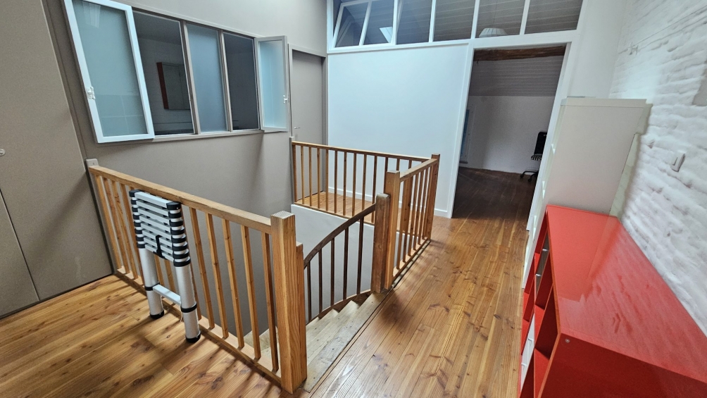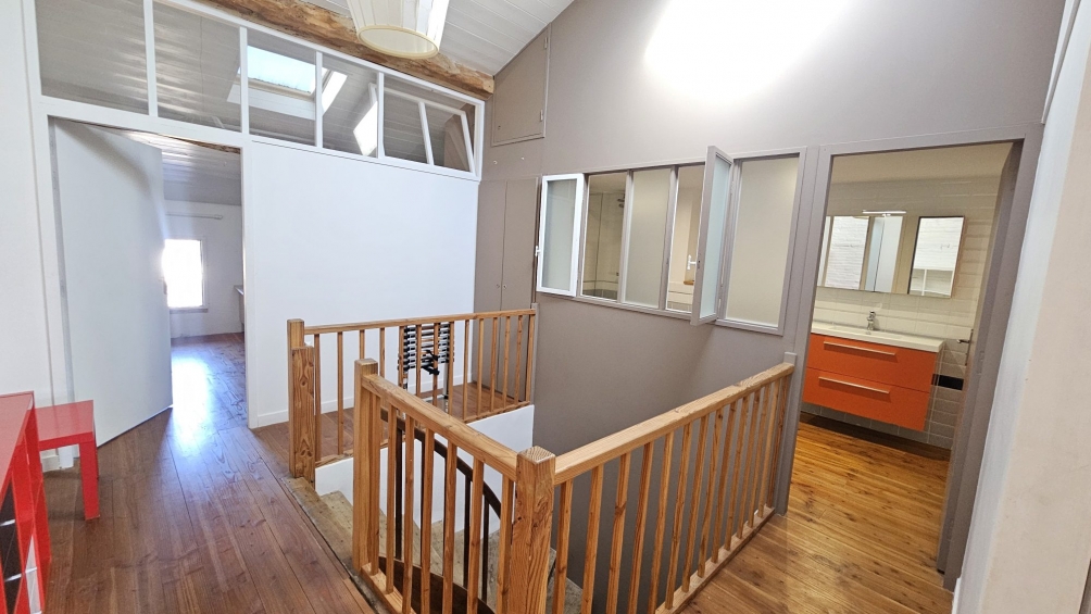 Upstairs, a huge bedroom and a second bedroom with a dressing room have a bathroom and a separate toilet. On the second floor, which was completely renovated in 2014, there are two additional bedrooms and a contemporary shower room with a toilet. The space is organized around a landing that is bright thanks to a large Velux window and provides access to an attic.