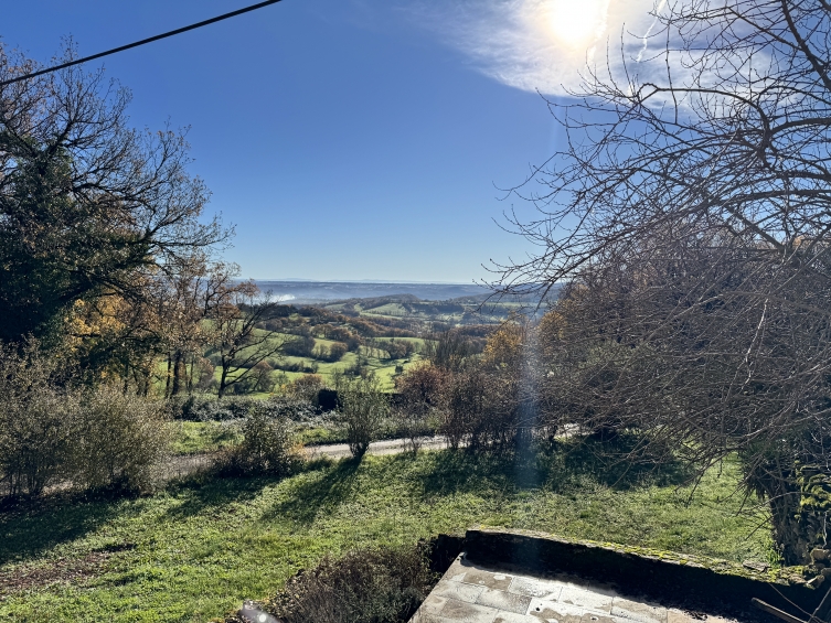 The views over the Seye Valley from this detached stone property (160m2) are fabulous. Formerly two houses, they have been amalgamated to make a four bedroom house with three bathrooms and a wet room on the ground floor and potential to make a ground floor bedroom.