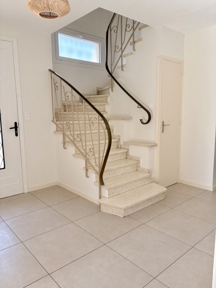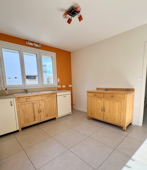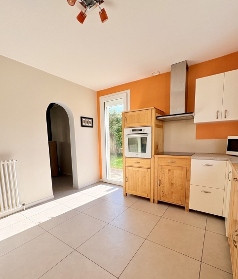 Au Rdc un grand salon séjour, une cuisine (avec placards, four, hotte, plaque induction neuve, microondes, lave vaisselle), WC, un cellier, une buanderie et une pièce pouvant faire office de bureau.