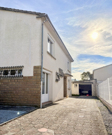 A l'étage, un grand palier, 4 chambres dont 3 avec petit placard, une salle de bains (baignoire, douche, double vasque) et un WC séparé. A l'extérieur, un garage, 3 places de stationnement et un petit jardin.