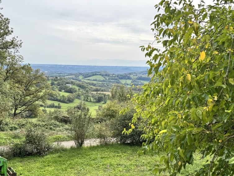 Dans le jardin, on trouve plusieurs arbres matures, dont un grand noyer, des terrasses, des pelouses, des bordures d'arbustes, de nombreuses places de parking et ces vues.