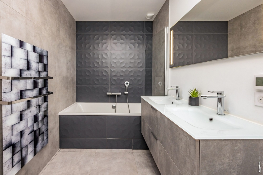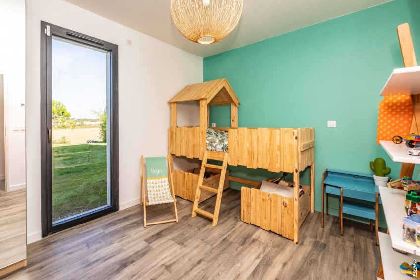Au niveau du jardin, les chambres des enfants, leur salle de bains et les toilettes séparées.