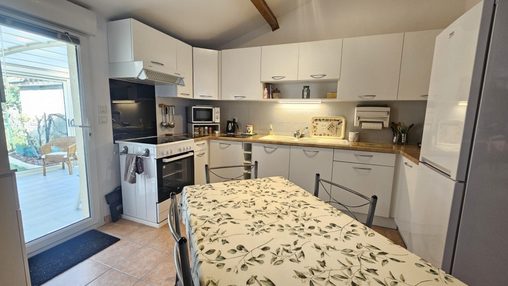 La maison est particulièrement bien entretenue, ne nécessite donc pas de travaux. La cuisine est déjà meublée et équipée, venez donc y poser vos valises comme on dit.