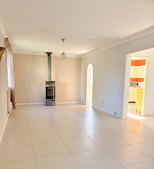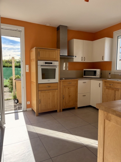 Au Rdc un grand salon séjour, une cuisine (avec placards, four, hotte, plaque induction neuve, microondes, lave vaisselle), WC, un cellier, une buanderie et une pièce pouvant faire office de bureau.