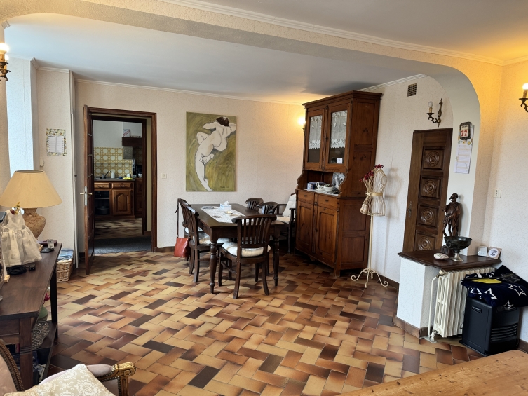 On accède ce bien par une paire de portails donnant sur une aire de stationnement pouvant accueillir plusieurs voitures. L'entrée de maison 1 se fait par un petit halle d'entree avec des escaliers menant au premier étage. Salon/salle à manger (29m2) avec parquet, cheminée avec poêle à bois, radiateur et placard. Cuisine (11m2) avec des meubles faits main, un lave-vaisselle, une plaque de cuisson électrique et une gamme d'éléments de rangement. Buanderie avec chaudière au fioul, ballon d'eau chaude et accès à la deuxième maison. Palier au premier étage avec accès au grand grenier, radiateur. Chambre 1 (18m2) Radiateur et parquet. Chambre 2 (18m2) Radiateur et parquet Salle de bain (9,4m2). Avec baignoire carrelée, bidet, lavabo, radiateur et radiateur sèche-serviettes. WC séparé Maison 2 Cuisine (13,2m). Avec des éléments de cuisine neufs, une plaque de cuisson à induction, un four, un réfrigérateur, une hotte aspirante, un évier et des plans de travail. Salle d'eau Avec douche, lavabo et WC Premier étage Palier avec sol en bois et porte donnant sur l'extérieur. Salon/chambre 2 (14,5m2) Avec doubles portes donnant sur le balcon. Chambre 1 (16,9m2) A l'extérieur Garage 1 (9,9m2) Atelier (18,5m2). Avec réservoir à mazout de 1500li, murs en pierre et possibilité d'incorporer la deuxième maison. Four à pain. Grand four à pain avec barbecue sur le côté, rangement et surplomb à l'avant. Garage 2 (16,3m2). Beton avec toit en tuiles. Cave Accès de l'extérieur à la cave voûtée sous la maison. Jardin. Avec des pelouses plates clôturées et la possibilité de créer un jardin ou un potager s'étendant en tout à 3122m2. Parking pour plusieurs voitures sur le sol ou sur les pelouses. Grand réservoir d'eau de toiture à l'arrière de la maison. Fosse septique (non conforme) La fibre optique à haut débit est installée.