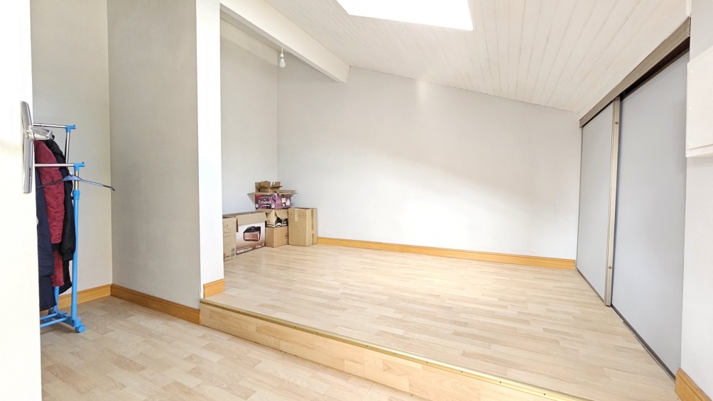 Une cage d'escalier, en bois massif, mène à un palier spacieux, qui permet d'installer un vrai bureau, un coin de travail. Puis 3 autres chambres dont une avec conduite en attente pour transformer en salle d'eau si souhaitée.