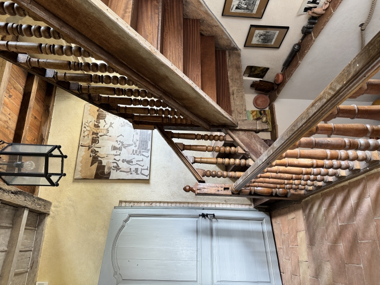Au premier étage, deux grandes chambres accessibles par la fameuse galerie. On y circule librement et parfois on s'arrête pour flâner sur la banquette. Les deux autres chambres plus petites et modestes sont dans la partie fermée du bâtiment.